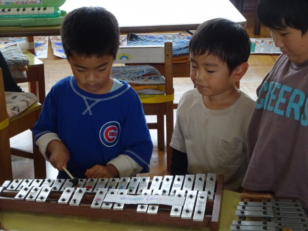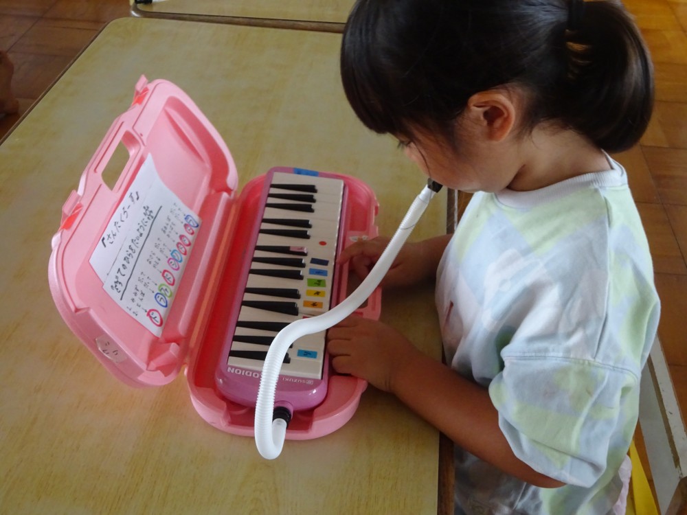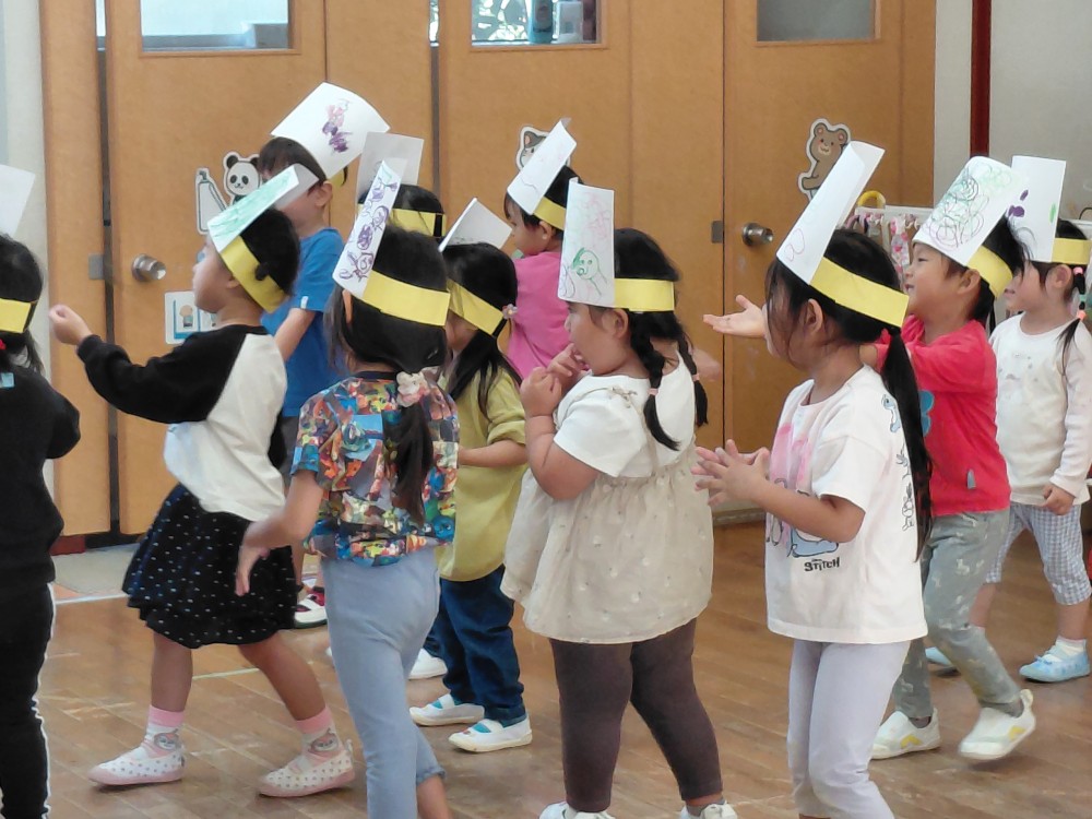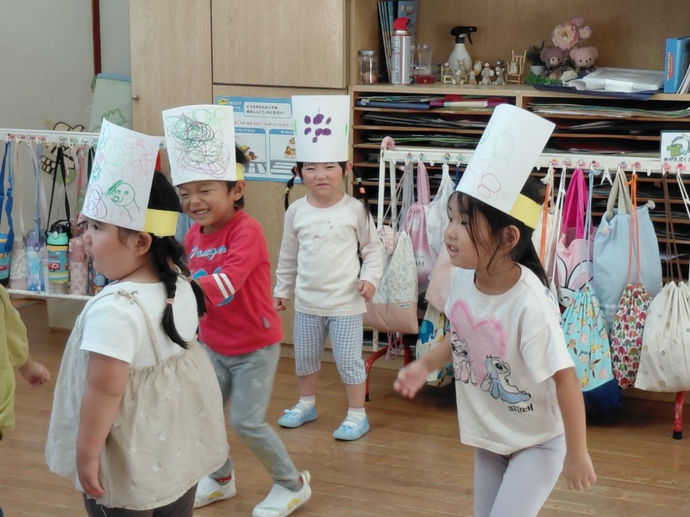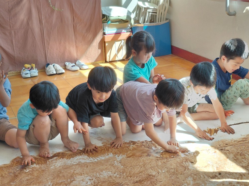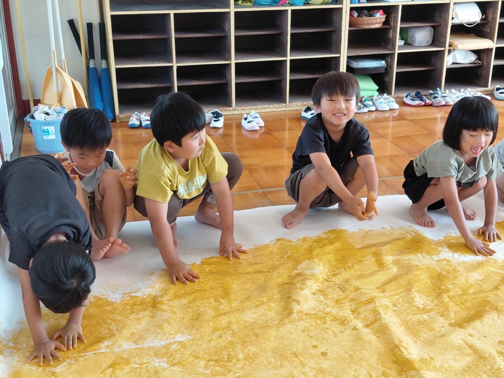 年中組からもペタペタペタペタとたくさんの音が聞こえてきました。「おもしろい」「色、もっとちょうだい」 「なんか混ざった」と張り切っていました。