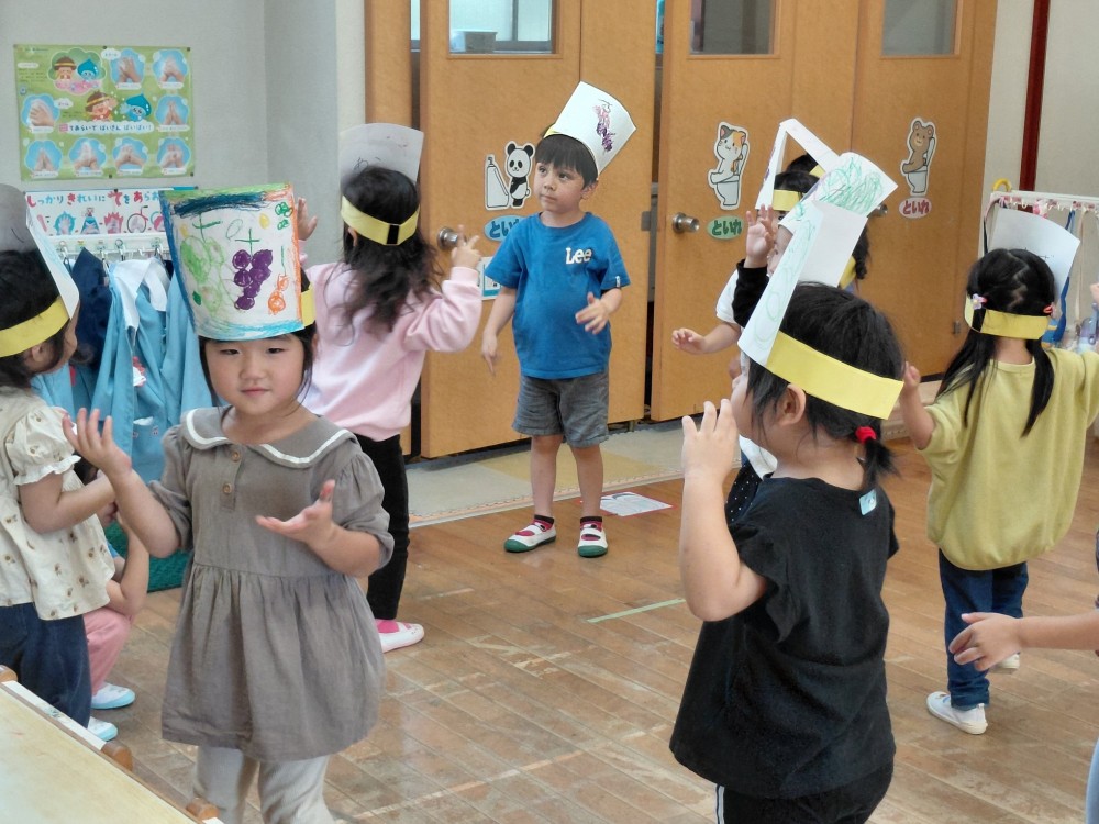 年少組はブドウを描いたそうです。「おいしいブドウをどうぞ」と言ってご馳走してくれました。