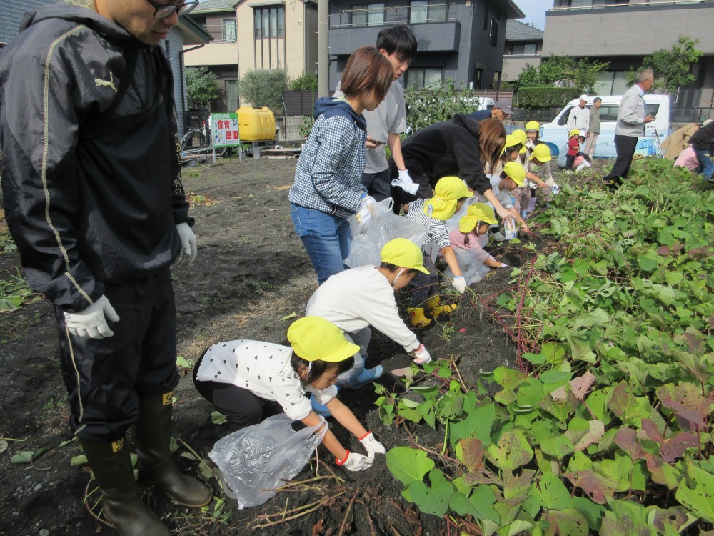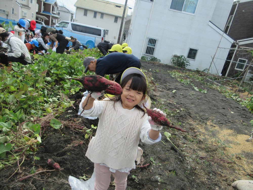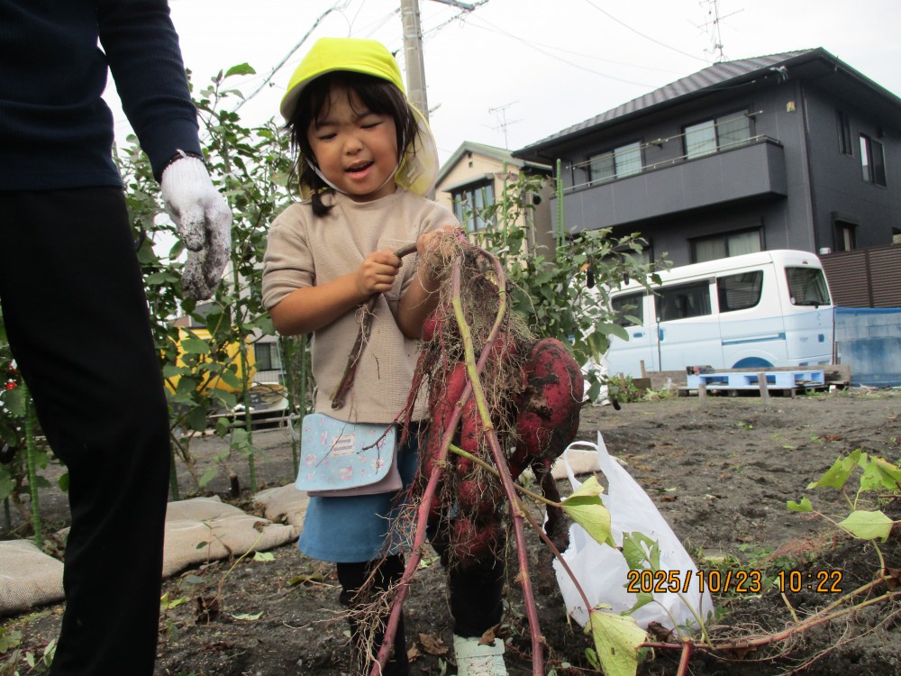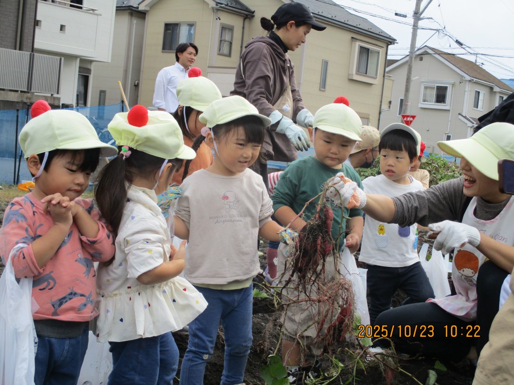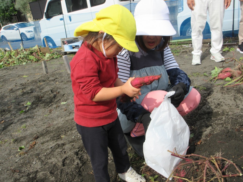 雨で1日延期となった芋掘りでしたが、農協さんやキラキラおたすけマンさんにご協力いただき、無事に芋掘りができました。