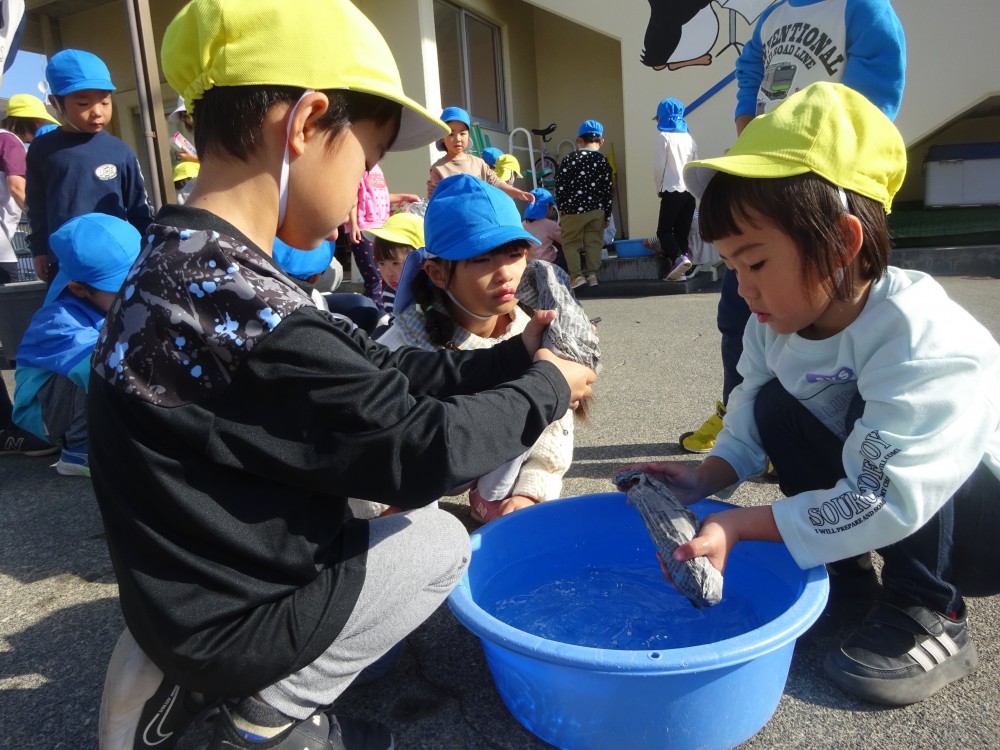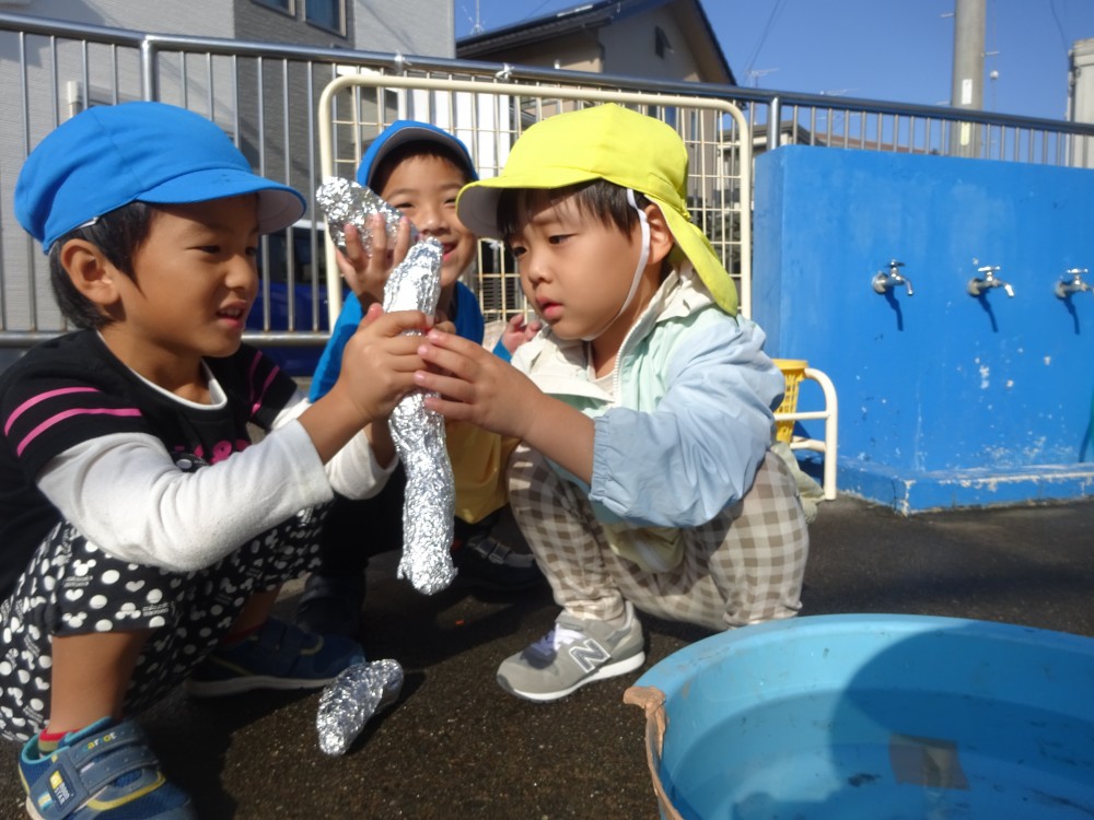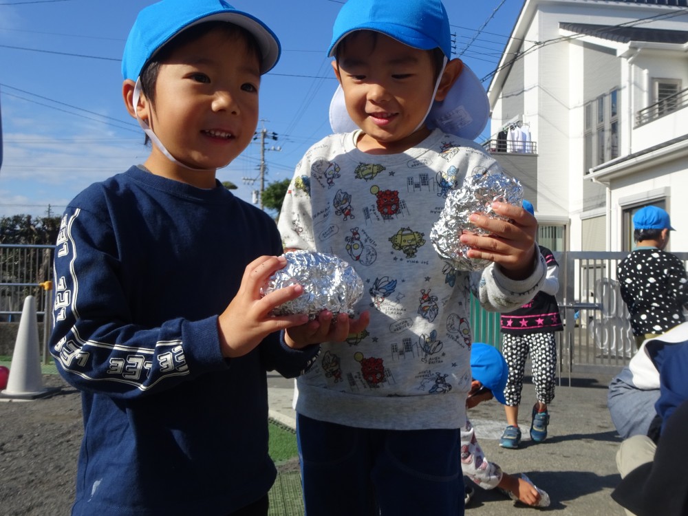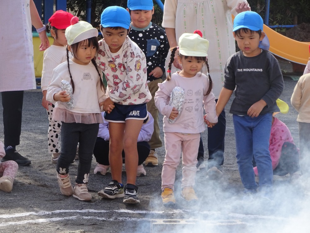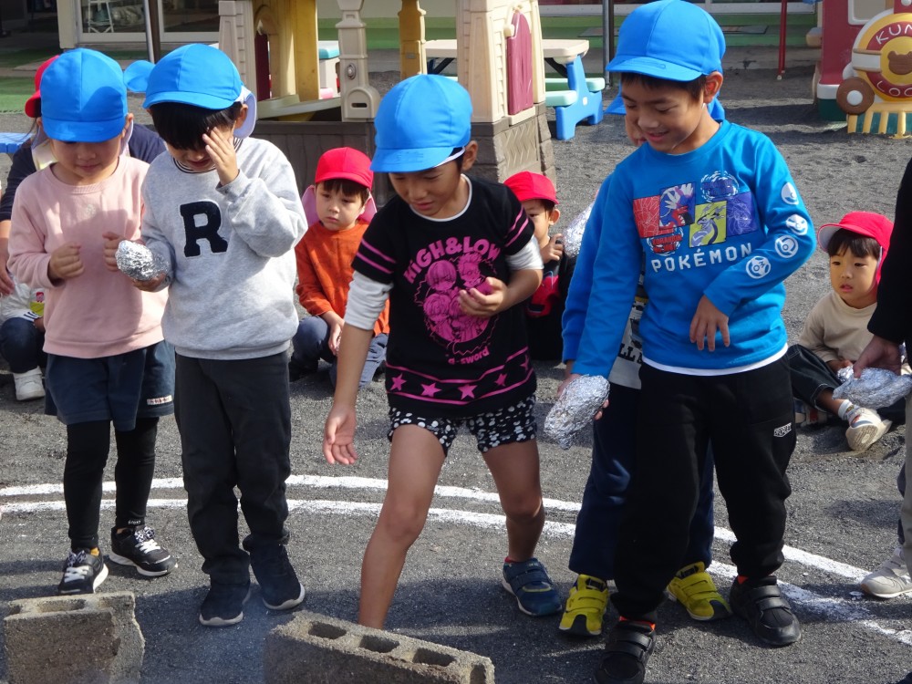サツマイモ掘り後、年長組から焼き芋大会のお知らせがあり、みんなで準備を進めてきました。