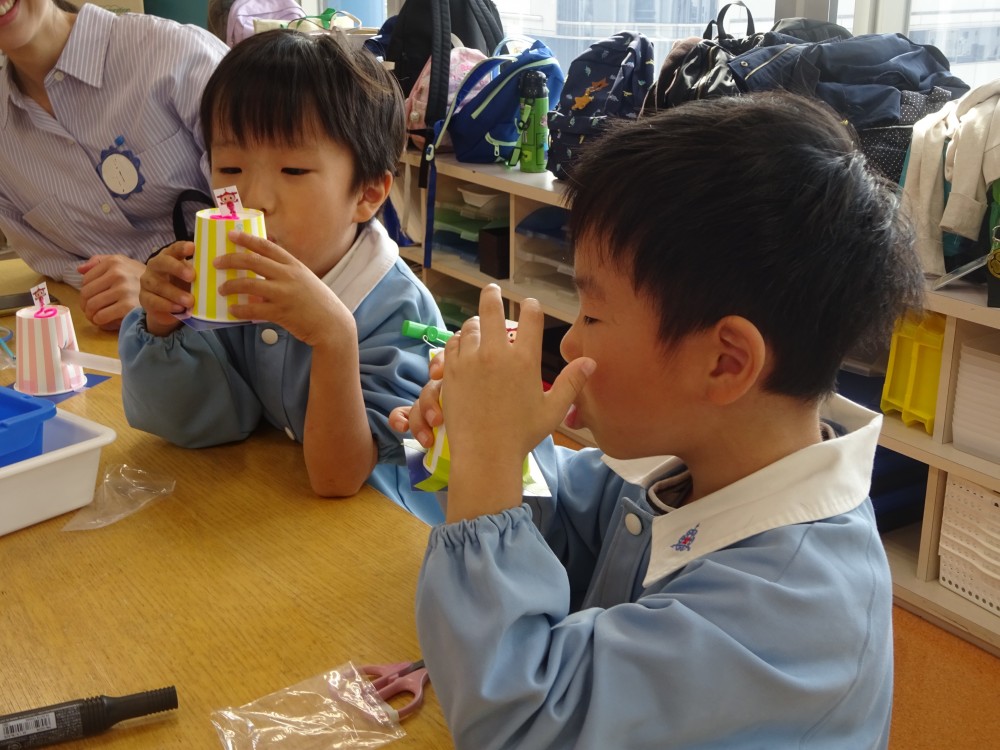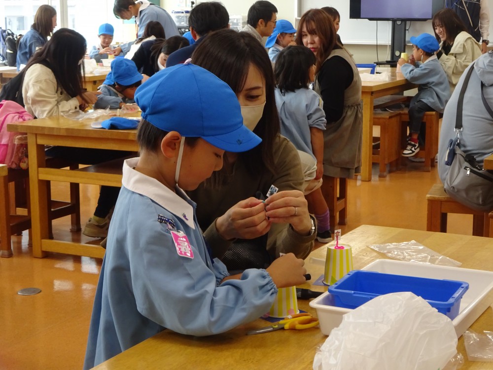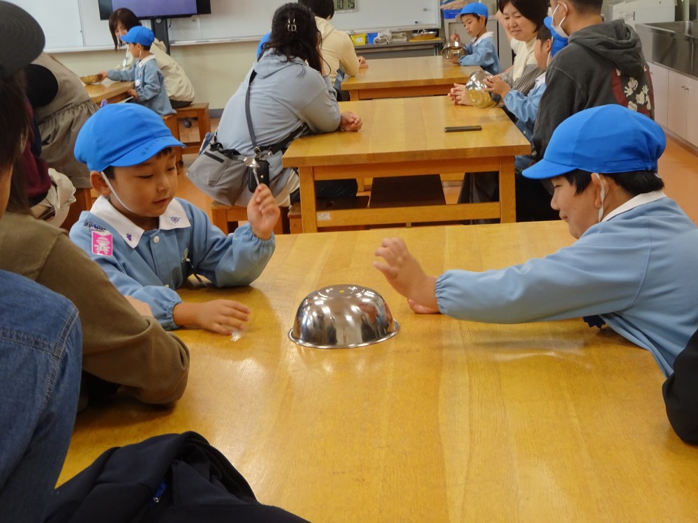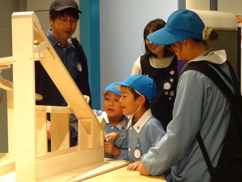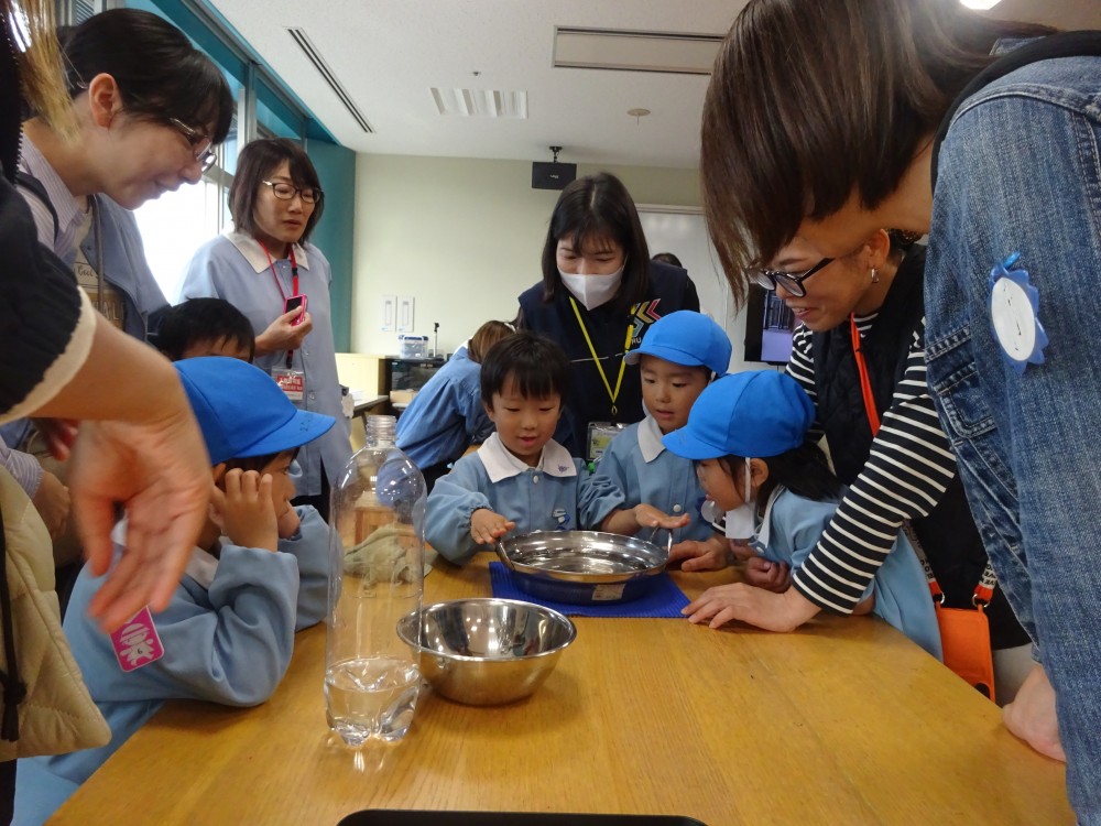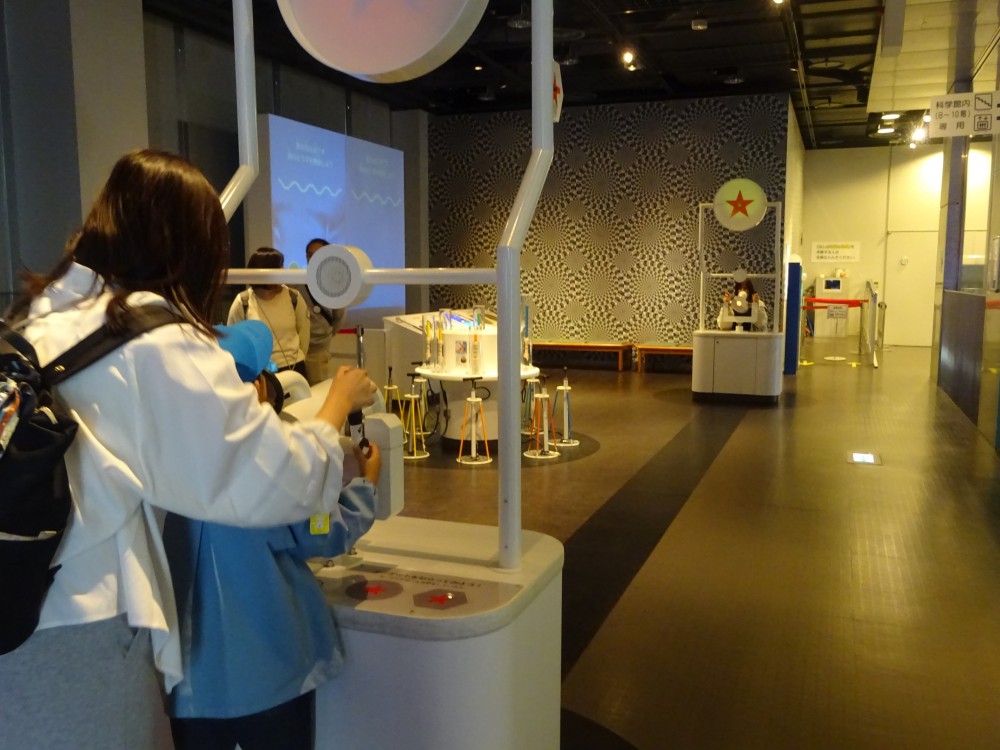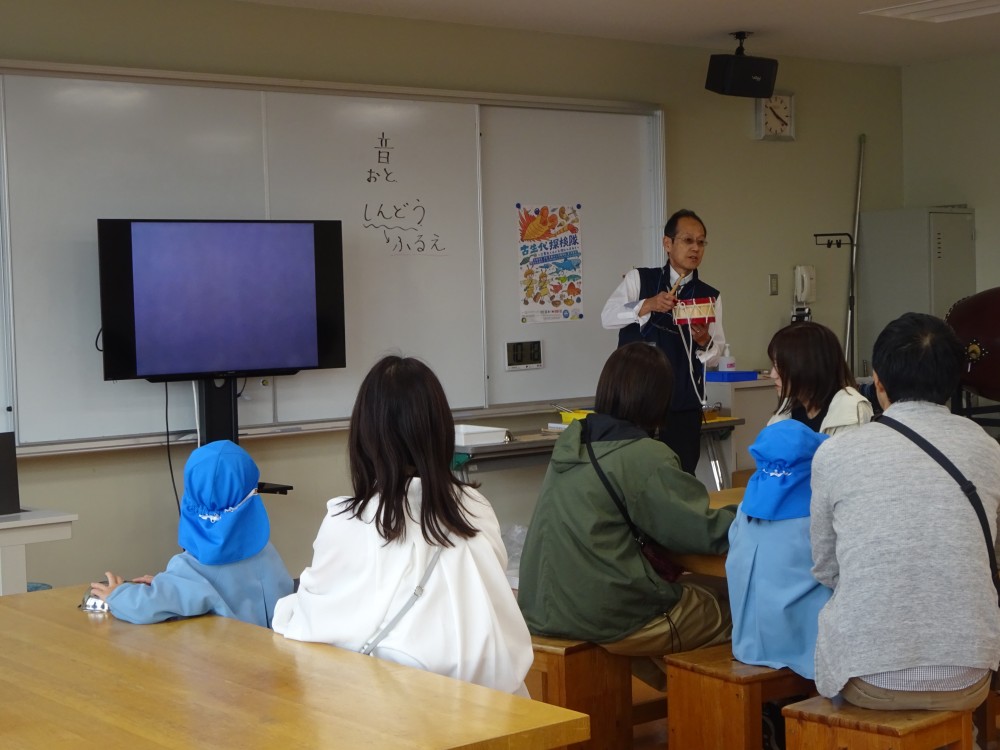 まずは、科学館学習に参加しました。親子で実験や製作を楽しみます。テーマは「音」