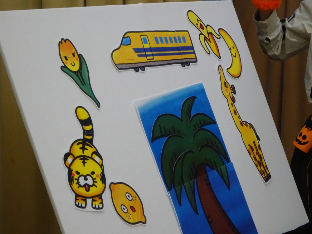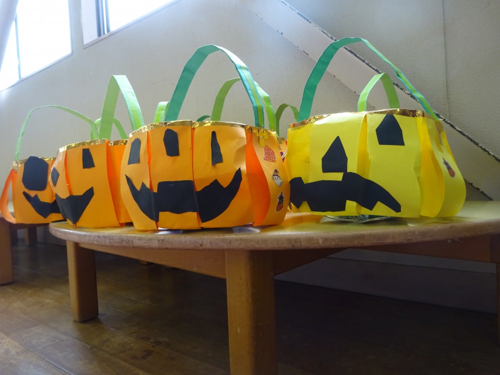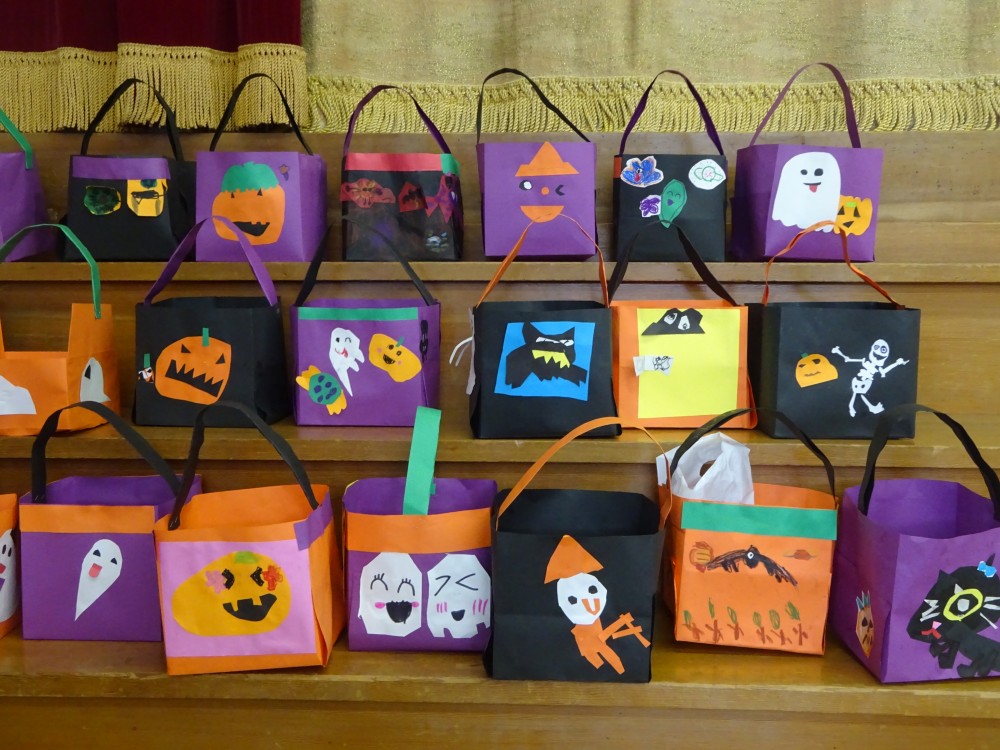 誕生会の会場には、子どもたちの作ったハロウィンバックも。