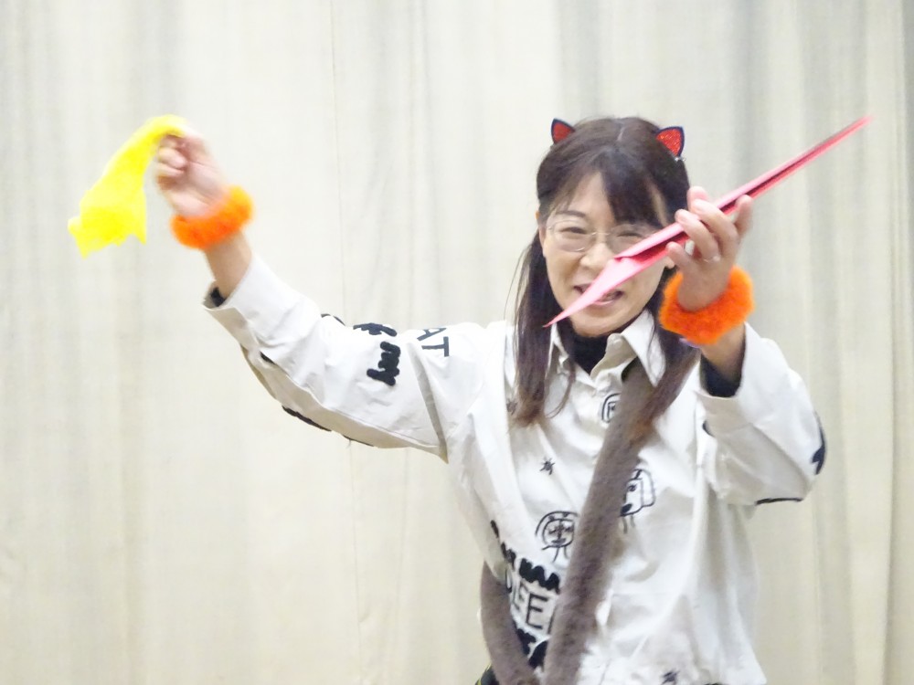 緞帳をあけると、有志の皆さんが仮装をしてスタンバっていました。「え~