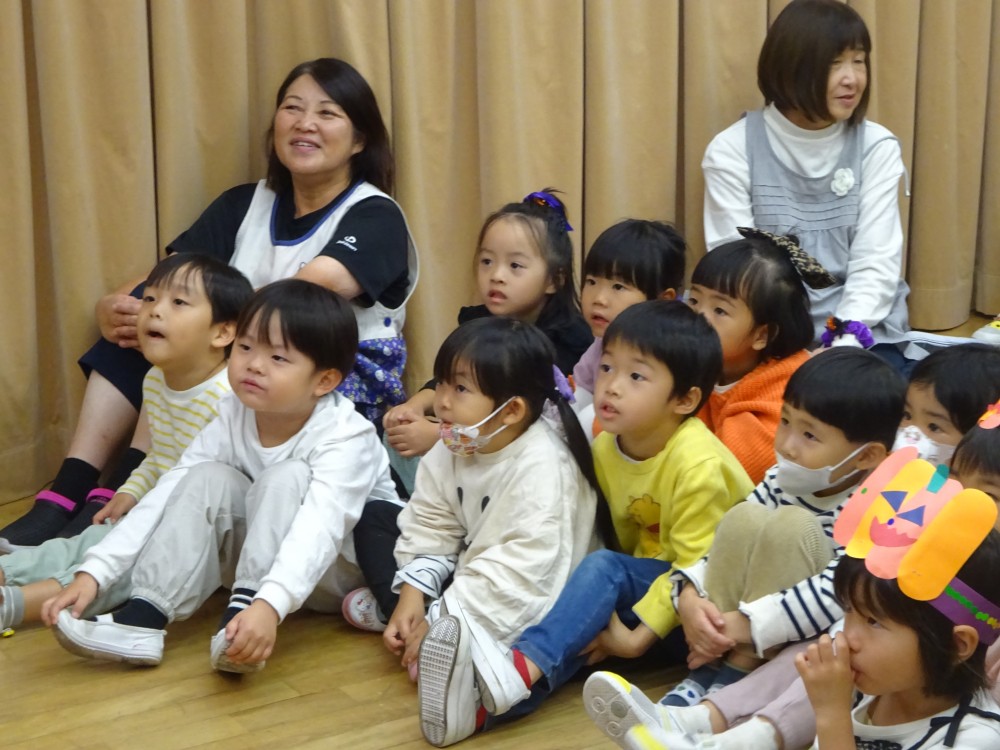 怖いかな?年少の子どもたちは、年長や年中組の様子を見ていました。