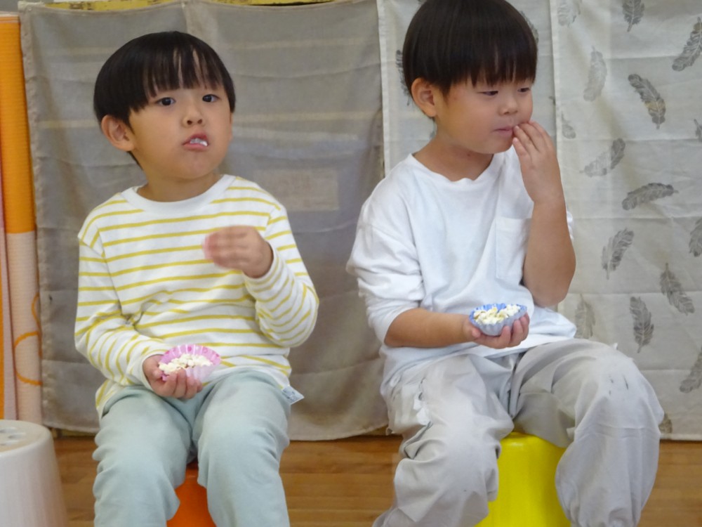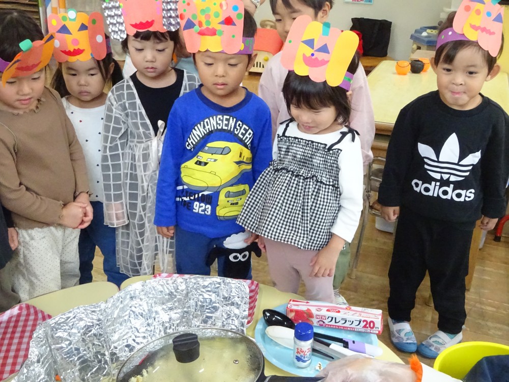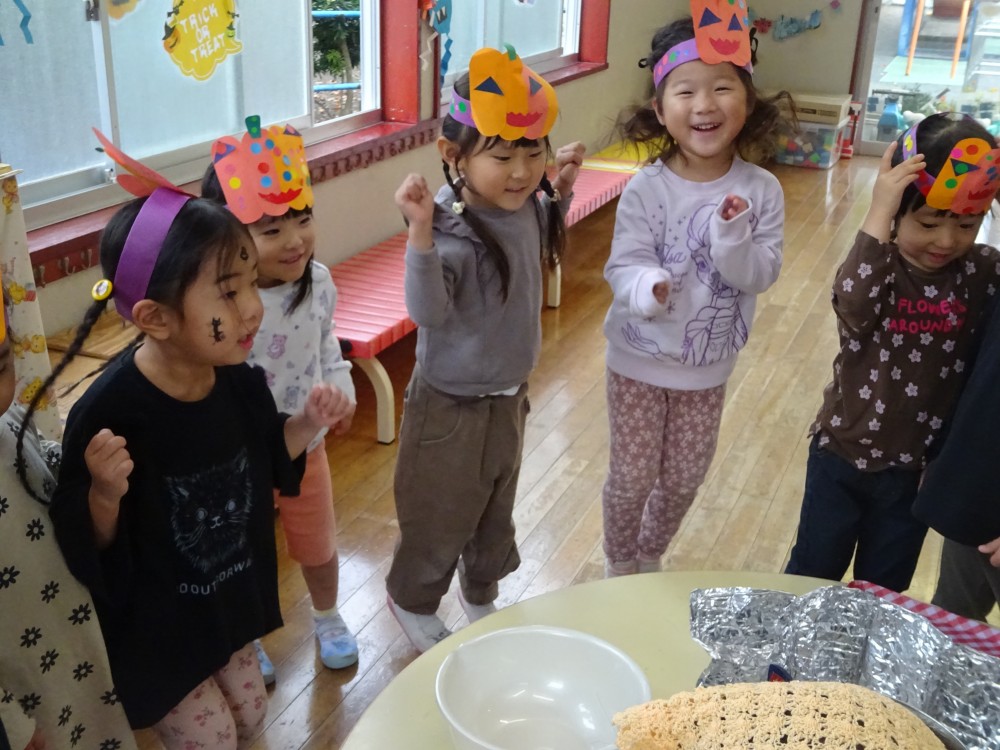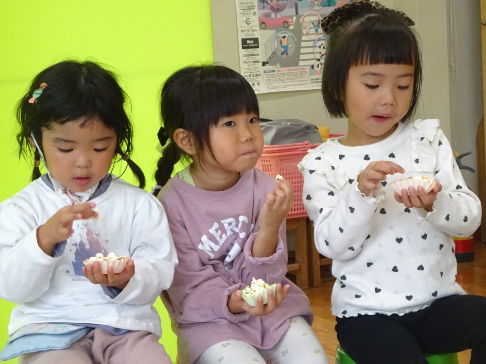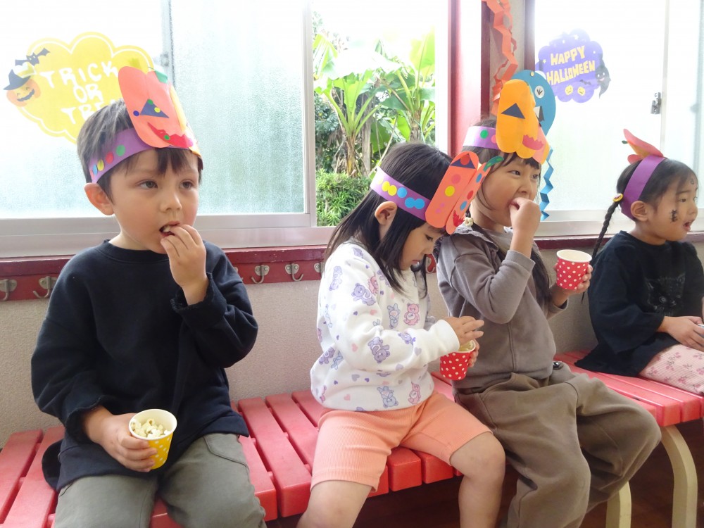 10月31日(金)はハロウィン。10月生まれの誕生会とハロウィンパーティー・ポップコーンパーティーが行われました。