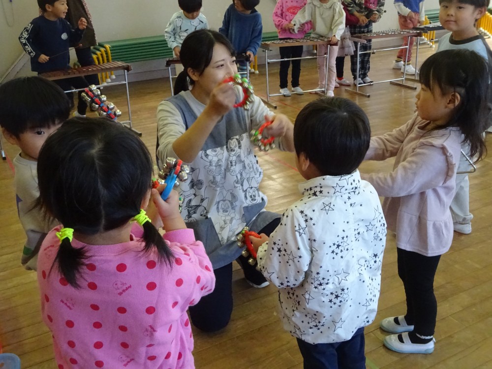 満3組と年少組はすずを持ってご機嫌で鳴らしていました。