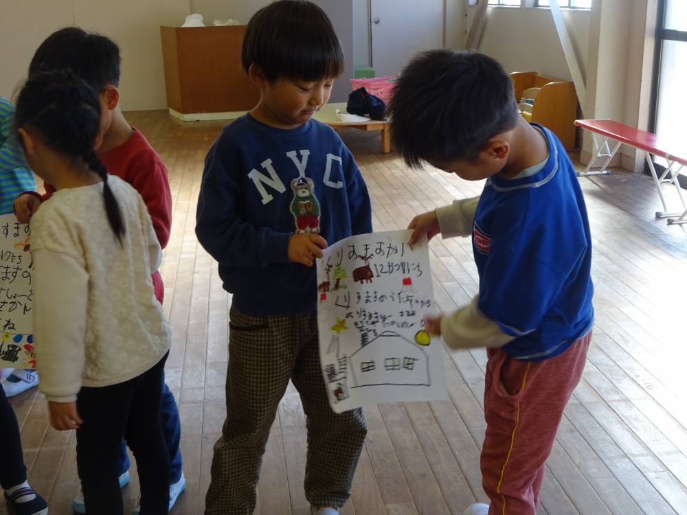 年長組から、クリスマス会のお知らせがありました。