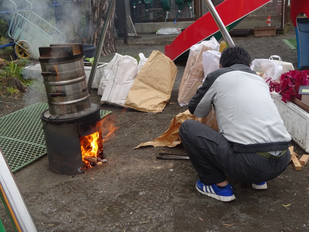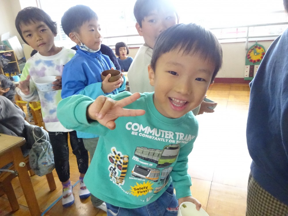 前日にもち米を研いでくれた年長組が、この日も張り切って準備を進めていました。