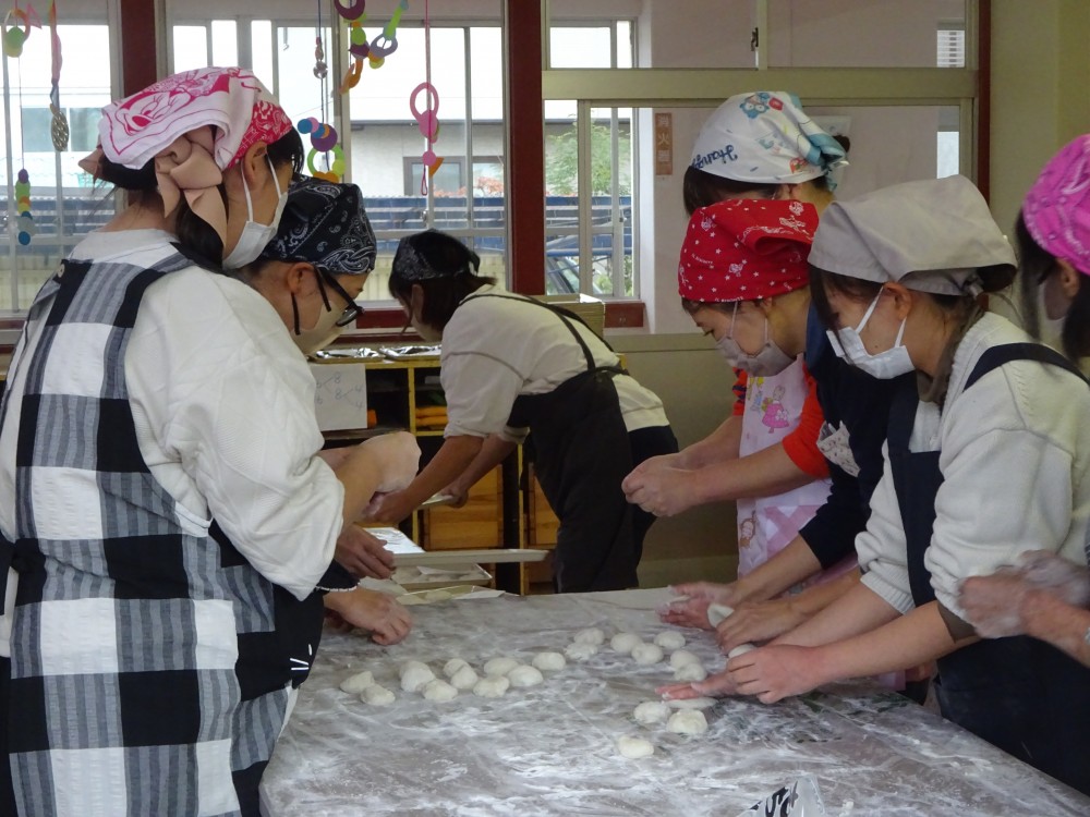 部屋では、役員さんがつきたてのおもちを丸めてくれました。