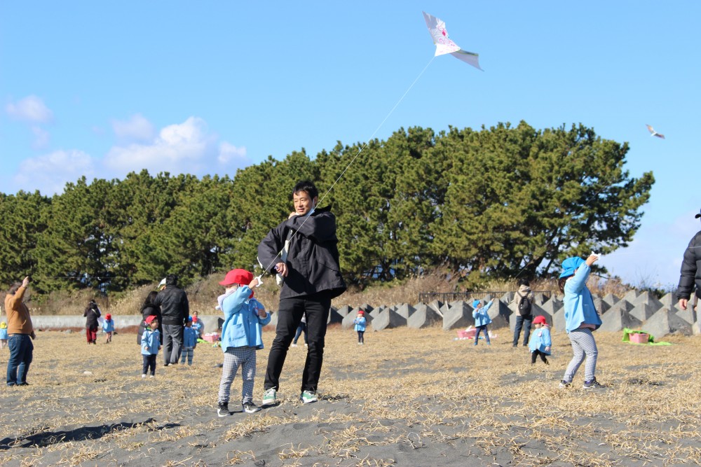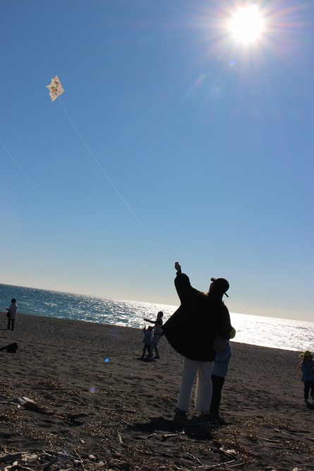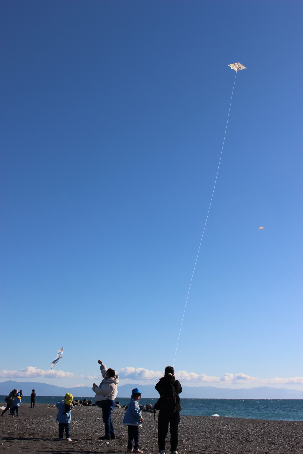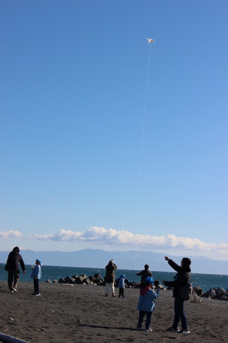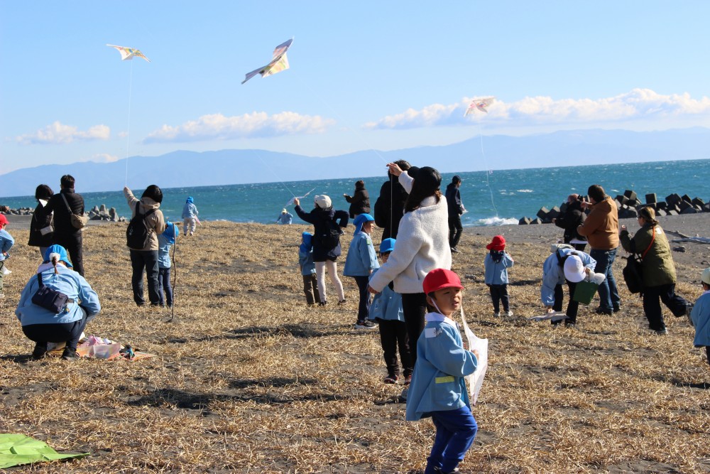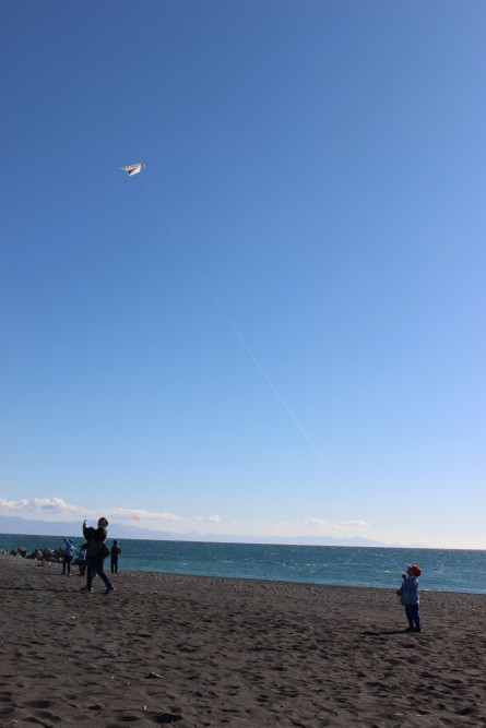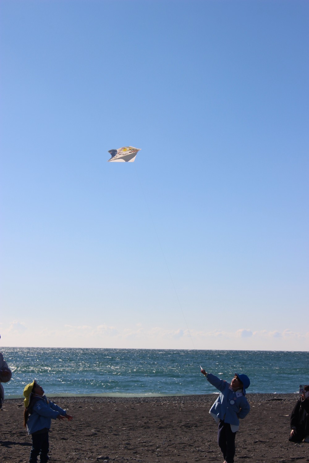 新年恒例となってきた凧揚げ大会が、1月8日に行われました。10時過ぎ、海に向かって出発しました。