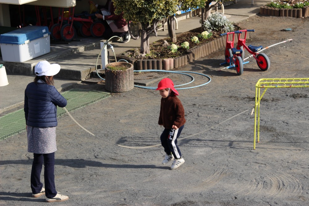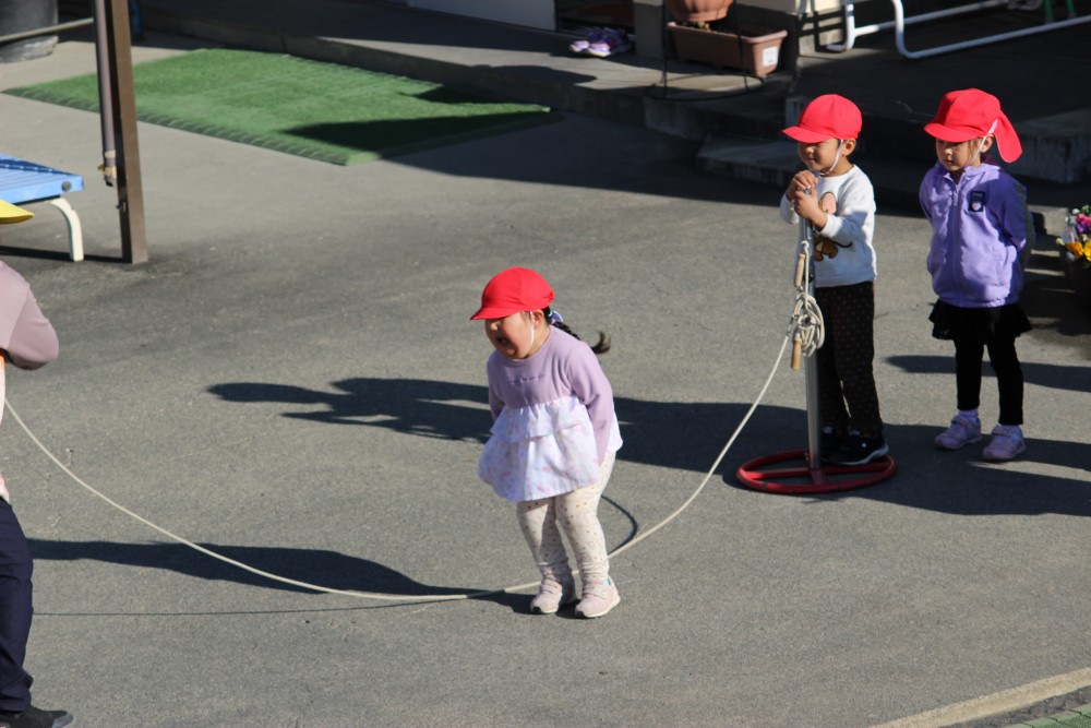 年少組が長縄に挑戦するようになってきました。難しいけれど頑張っています![]()