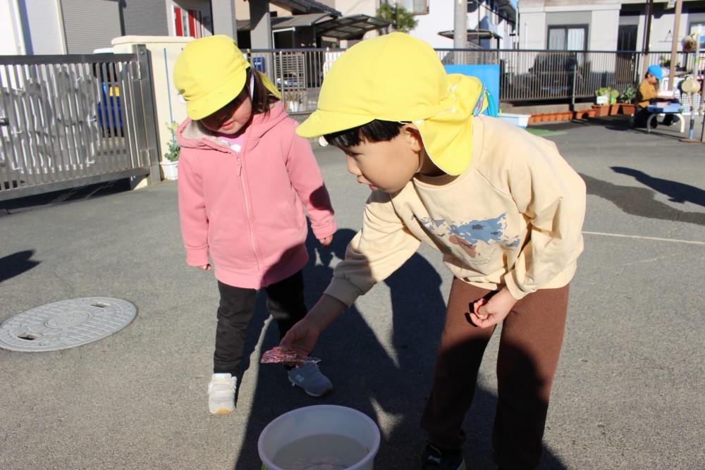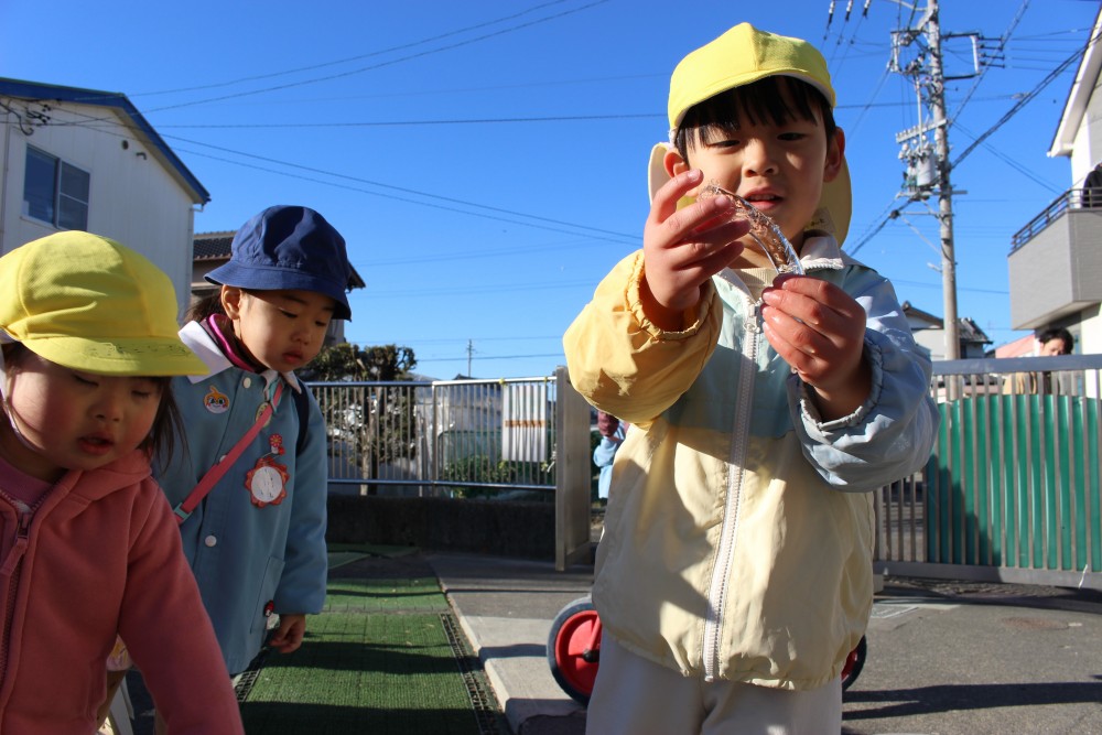 寒波のおかげで氷の張る日が多く、子どもたちも喜んでいました。