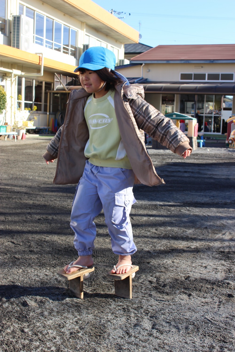靴下を脱いで”1本歯下駄 №7”に挑戦!寒さなんてなんのその!