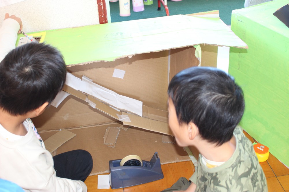 作りたいものがいっぱい!アイデアを実現しようと工夫している子どもたち。わくわく感に包まれた毎日です