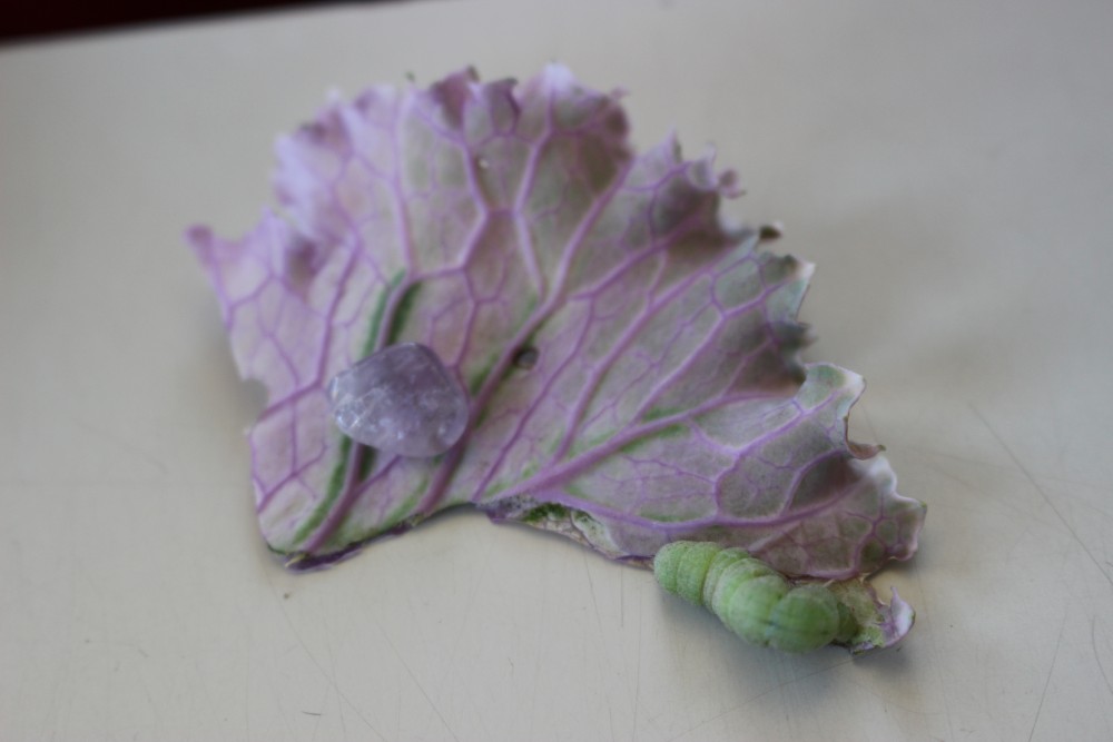 「発見!」と子どもたちが知らせに来てくれました。見つけたものは「サファイア」と「いもむし」だそうですサファイアもいもむしも園庭でみつけたそうです。