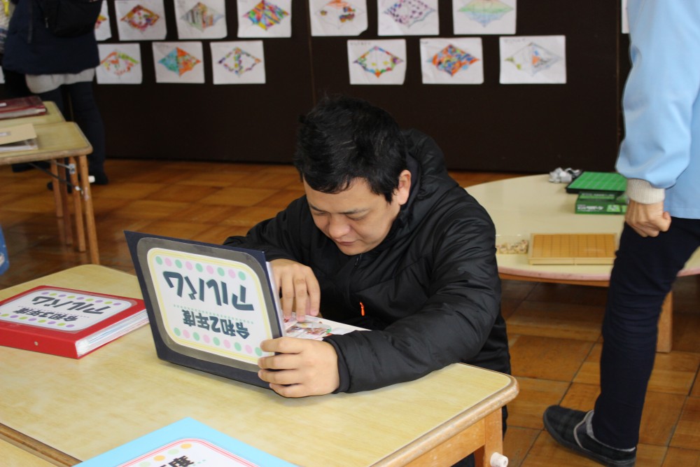 おうちの人が作品一つ一つをじっくり見てくださいました。