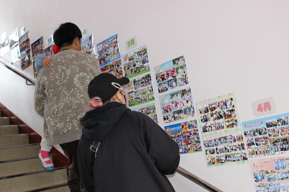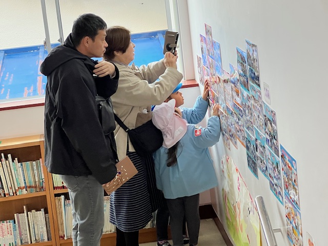 廊下にある動物クイズ。お父さんたちがしっかり見てくれました。