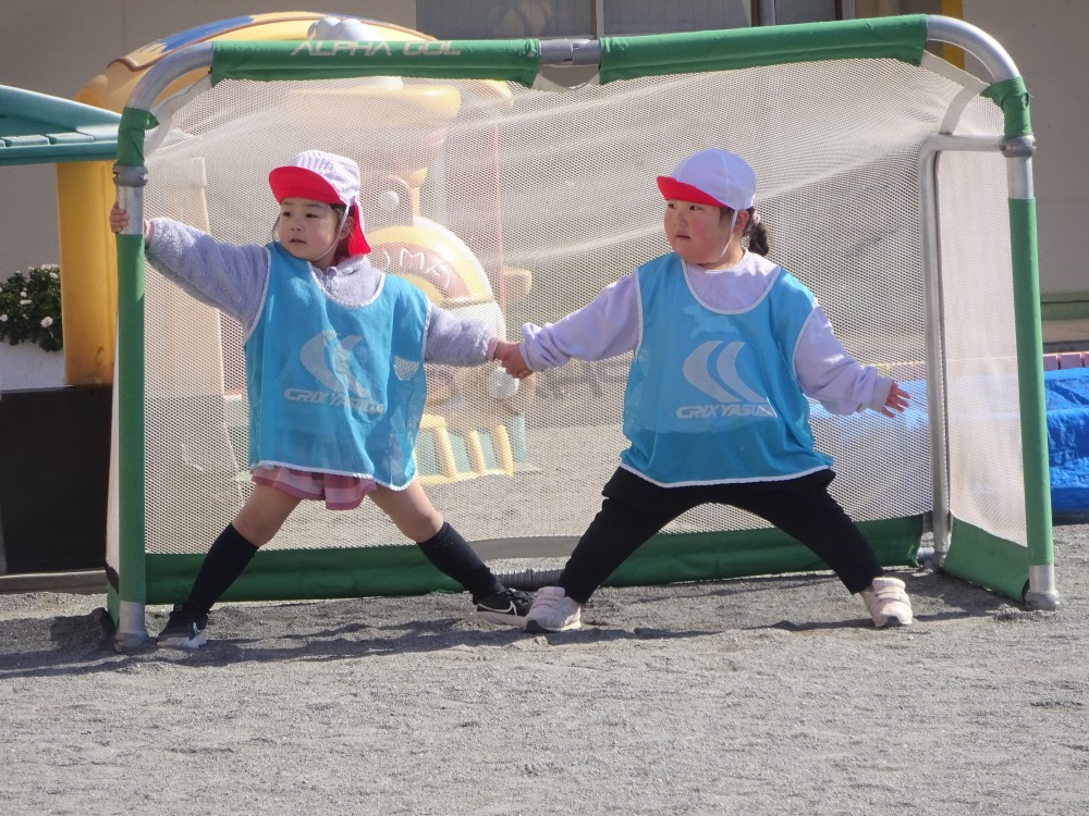 「ゴール守るよ」「えいっ」と果敢に攻めたり守ったりしていました。