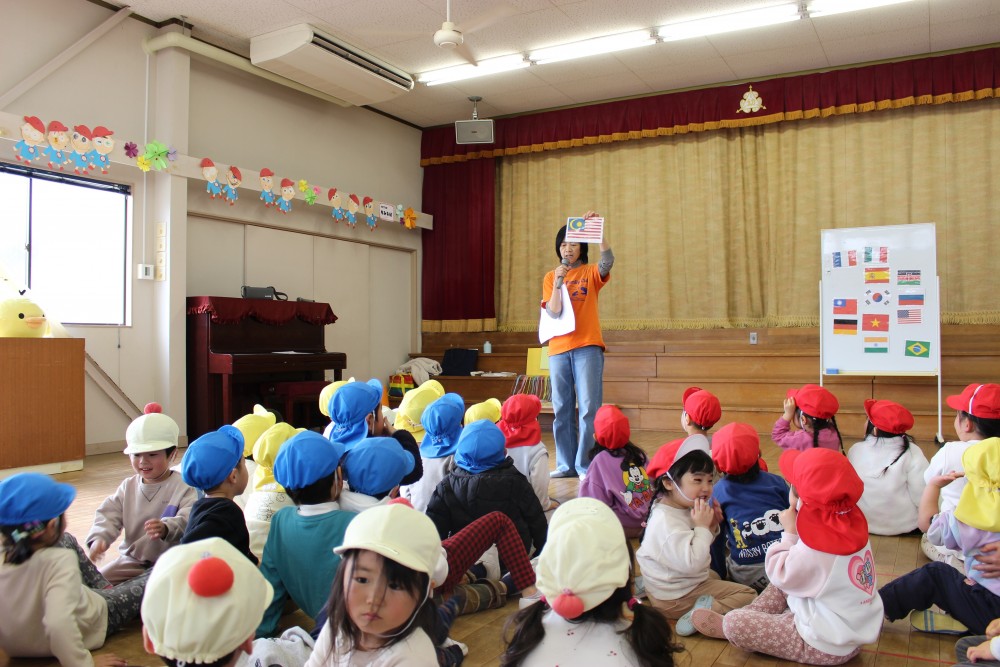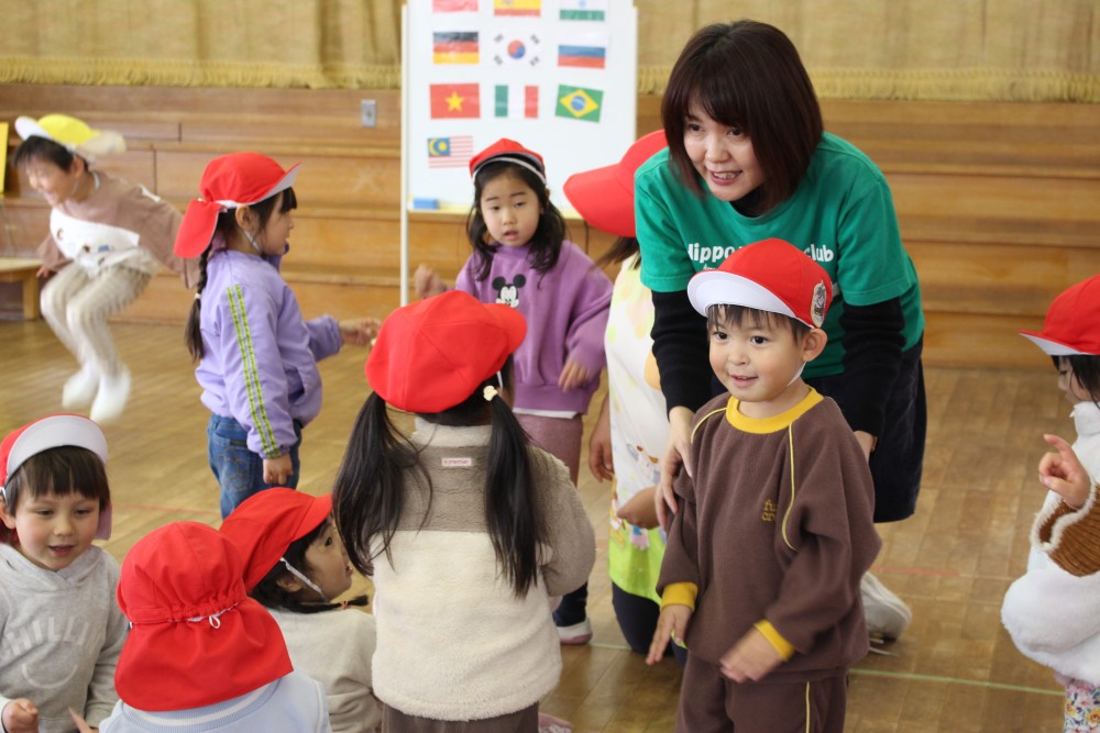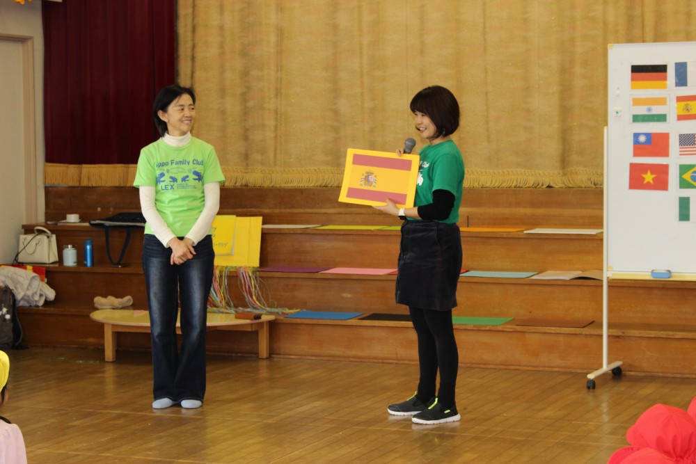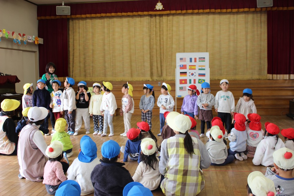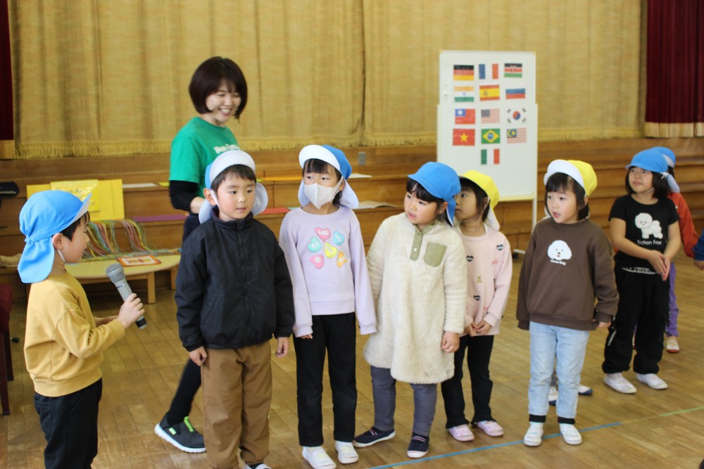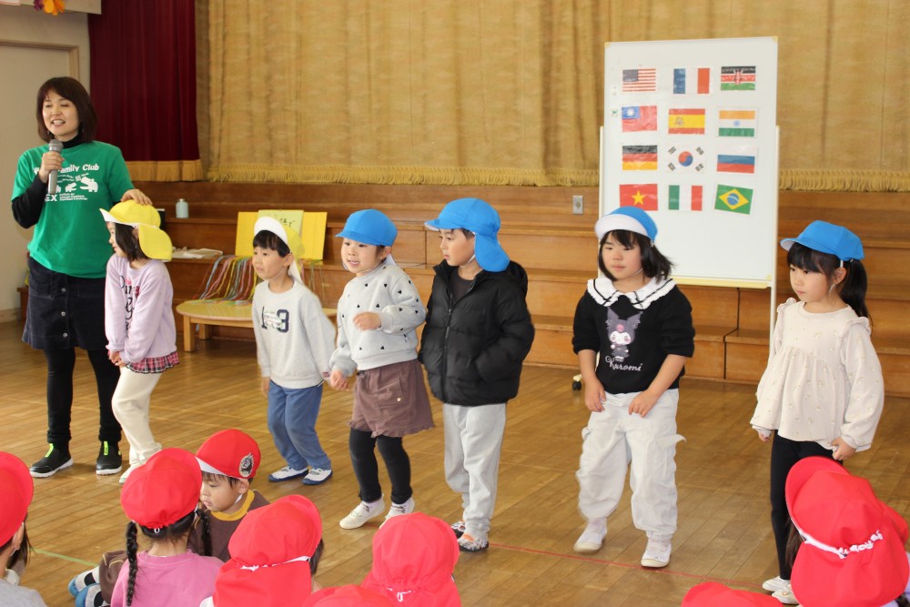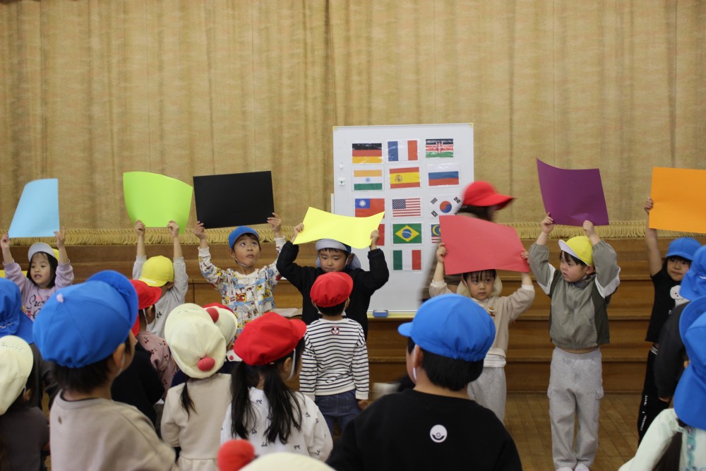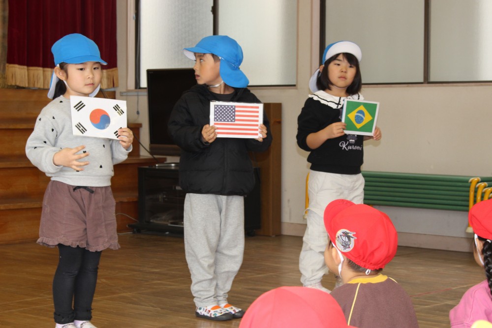 国旗の国のことばで挨拶をしてからじゃんけんをしました。