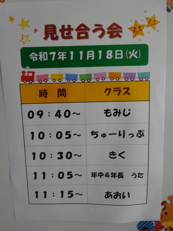 今朝、「明日、園長先生も見に来ていいよ~」と、ニコニコ顔の年少組や満3組に声をかけられました。